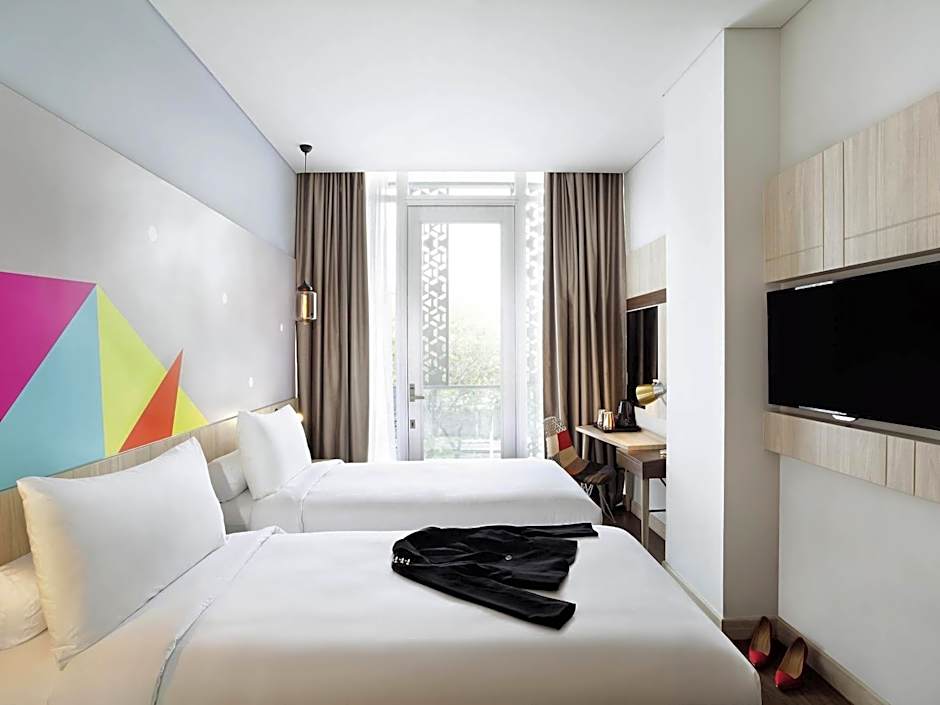 Fitted with air conditioning and a flat-screen cable TV, this twin room features a seating area, balcony with city view and a private bathroom with a shower. For convenience, a personal safe and a hairdryer are provided.
